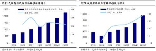 科技具体细分方向上,结合政策导向和技术进展,我们认为可重视三个方向。一是政策发力的数字基建,参考往年情况,今年四季度财政部或将提前下达2024年部分专项债额度,数字基建作为稳增长和调结构的重要抓手,有望成为政府支出的重点。根据中国通服数字基建产业研究院发布的《中国数据中心产业发展白皮书(2023年)》,预计“十四五”期间我国数据中心产业规模复合增速将达到25%。二是周期见底的硬科技制造,一方面,全球半导体产业每3-4年经历一轮周期,当前全球半导体销售额当月同比自4月以来跌幅持续收窄,半导体周期或已开始自底部回升;另一方面,近年来华为多次在基础软硬件领域实现突破,随着本土企业加大对技术创新和自主可控的投入,有望成为驱动我国硬科技制造进步的重要力量。三是技术变革的AI应用,例如政策支持和技术创新加持下智能汽车商业化应用提速,根据华经情报网的数据,预计2025年我国智能网联汽车市场规模将达2262亿元,22-25年间CAGR为23.2%。