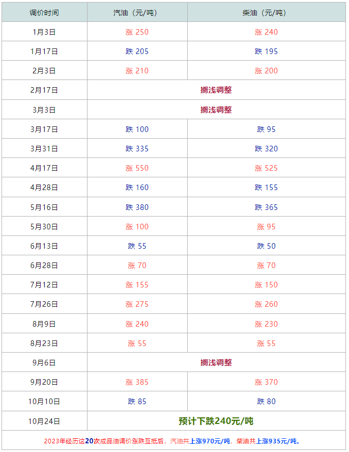 今年至今20次油价调整记录表