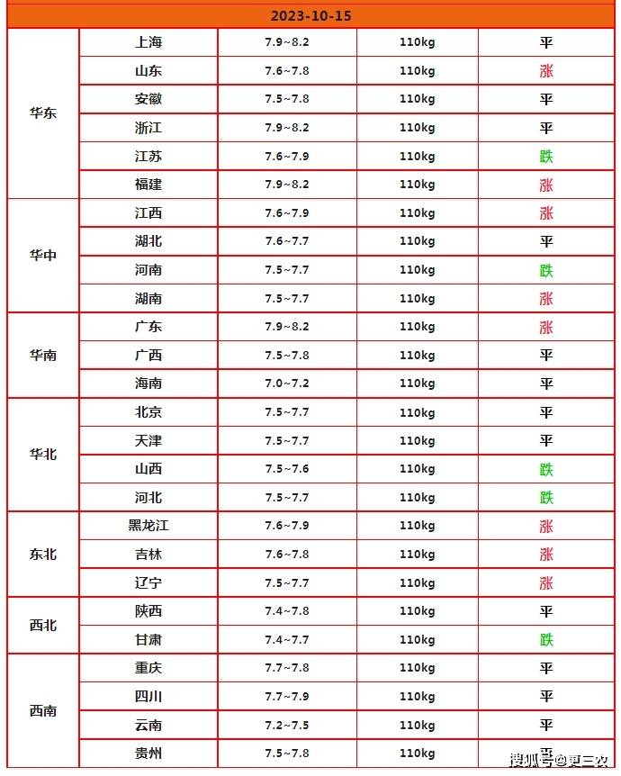 因此,在生猪市场多空交织下,国内猪价上涨承压,从市场反馈来看,10月15日,猪价涨势收窄,多地猪价应声下跌,市场情绪明显转差,个人认为,未来1~3日,猪价仍处于低位震荡的阶段,价格重心或将“由涨入跌”,不过,由于市场对于亏损出栏情绪较为悲观,猪价下跌的空间相对有限,短期内,猪价或将横盘在7.5元/斤上下,进入月末后,随着生猪供应压力减轻,猪肉消费缓慢回升,猪价走势或将有一定改善的迹象!