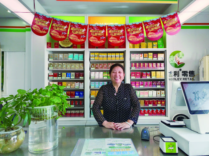 淮阴烟草分公司以“扮靓终端迎中秋·庆国庆”活动为主题,以良好的终端形象庆祝中华人民共和国成立74周年。图为“金丝利零售”加盟终端店旺一旺商店装扮后的店堂店貌。葛伟娟 摄