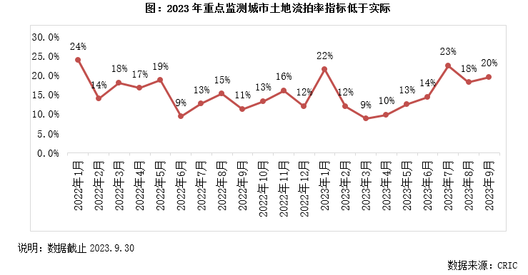 在当前的预公告制度之下,相当一部分远郊预公告地块未正式挂牌,就已经被市场抛弃,在很大程度上拉低了流拍率。CRIC数据显示,2023年上半年重点城市各月流拍率在15%及以下,直至下半年,随着越来越多的预供地清单临近截止时点,供地量增质降之下,流拍率指标才开始向真实情况回升,但考虑到大量地块仍逾期未供,指标数值仍不能完全反应土地市场的实际变化。