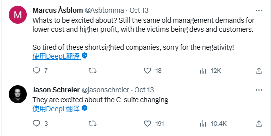 但是,有网友表现出消极态度并质疑:“兴奋点在哪呢?还是老一套,什么降本增效啊,提高利润啊,到头来还是消费者和开发者遭罪。我已经厌烦这种短视的公司了,请原谅我的失礼!”