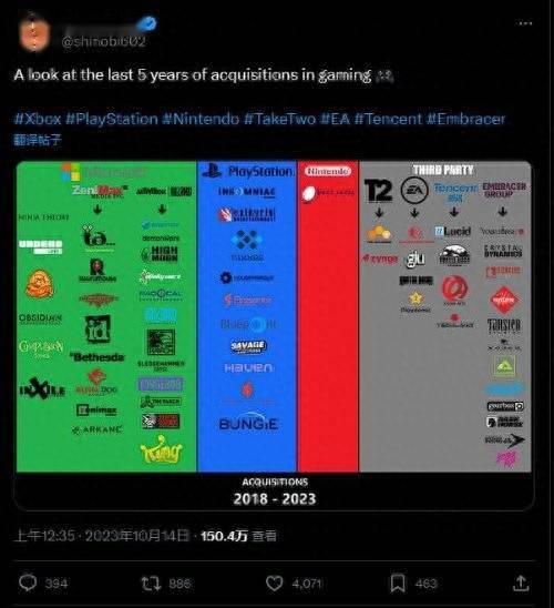 博主总结5年间游戏领域收购情况:微软索尼半壁江山