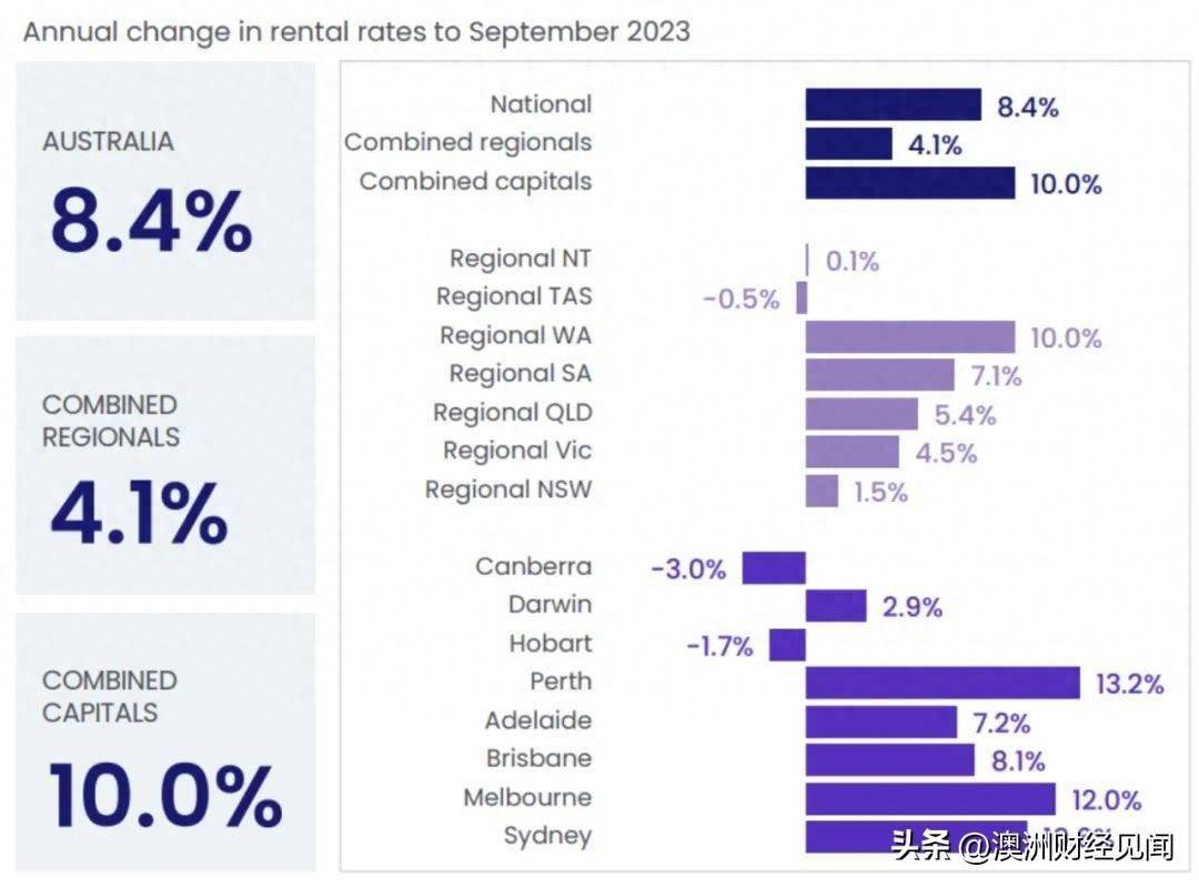 此外,澳洲首府城市的出租房空置率已降至 1.0% 的历史最低水平。