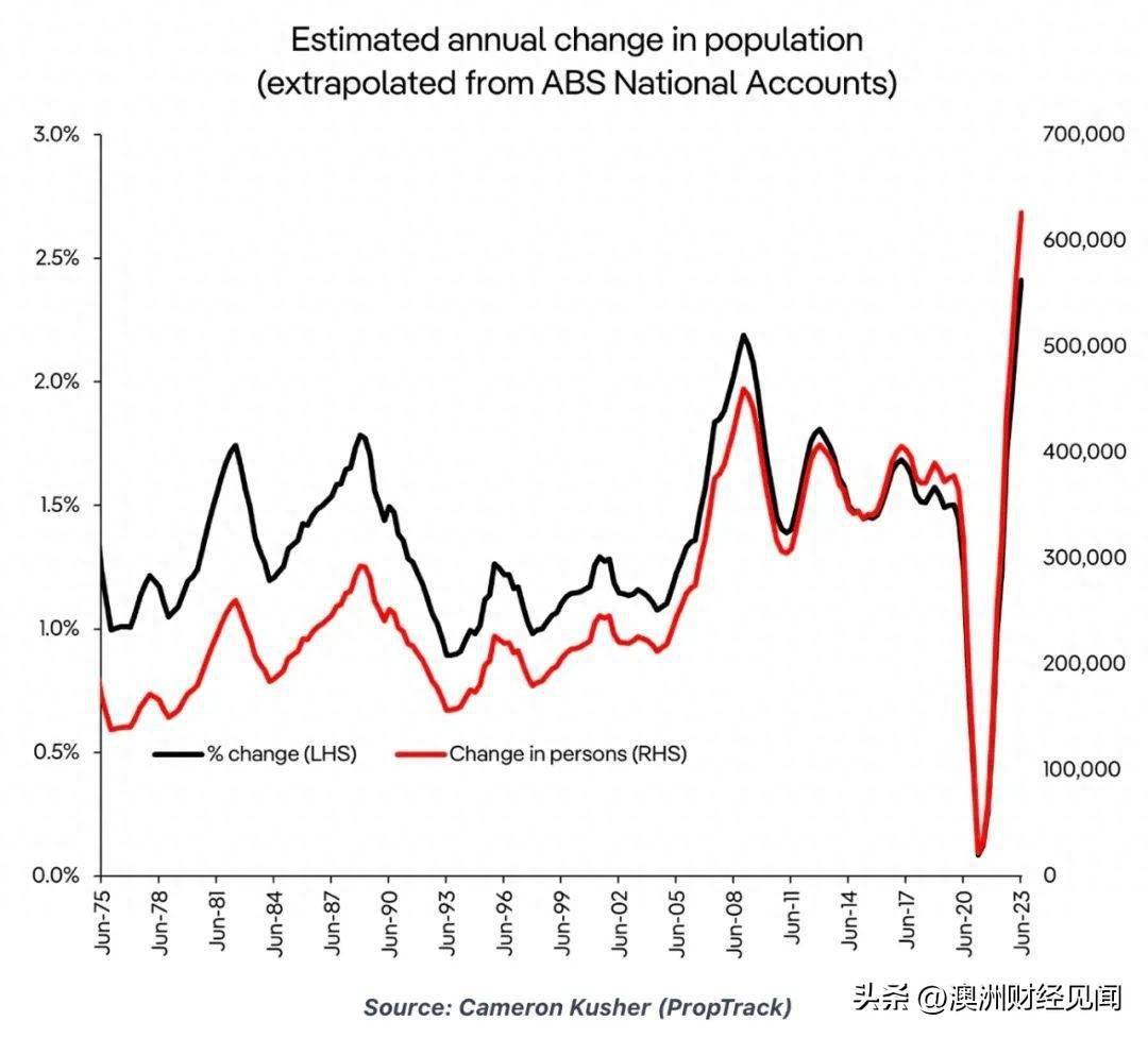 首先是澳洲政府创纪录的移民计划使澳大利亚在 2022-23 财年史无前例地增加了 626,000 人,其中海外净移民人数约为 500,000 人。