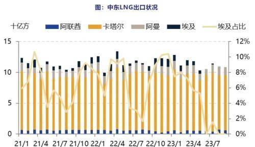 “埃及方面,因天然气以发电为主,且国内需求不断高企使得出口在长期来看无明显增幅,2022年取暖季LNG出口量为10.5亿方/月,假设巴以冲突继续恶化,以色列对埃及出口完全暂停,或只带来3亿到4亿方/月的出口缩量,对于欧洲在取暖季时维持在120亿方/月左右的LNG进口量边际影响较为可控。澳大利亚方面,本月初澳大利亚雪佛龙LNG项目工人称在9月底与资方达成的协议未能执行,计划重启罢工,于9日正式递交罢工通知。在9月该项目的罢工谈判中曾推动欧气价格上行突破40欧元/兆瓦时,短期该事件的演化会成为亚欧市场最主要驱动。后续来看,中东LNG出口核心国卡塔尔在冲突中参与度向来较低,因此主要关注埃及的态度以及潜在的苏伊士和东地中海地区物流情况即可。”李云旭进一步分析道。