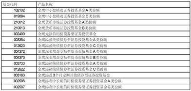 金鹰基金管理有限公司部分基金