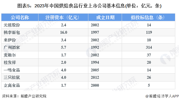 2、烘焙食品行业上市公司基本信息对比