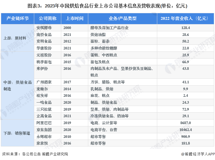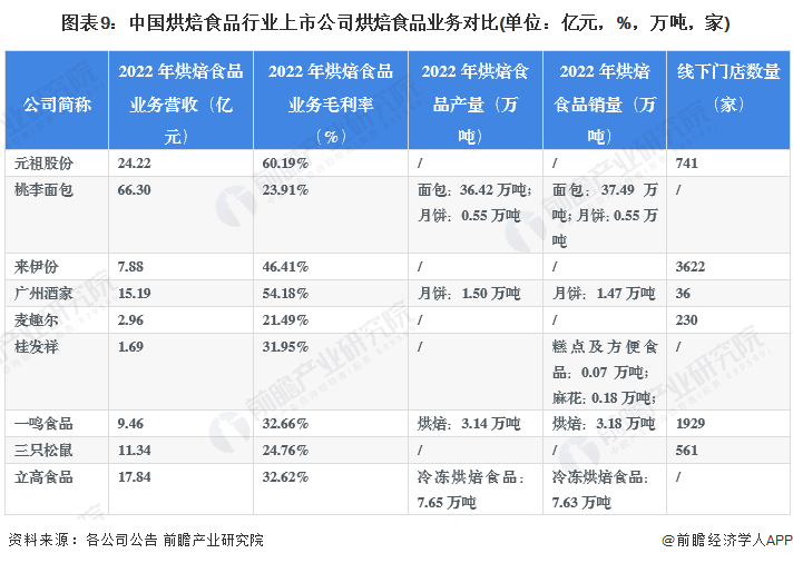 1、烘焙食品行业上市公司汇总