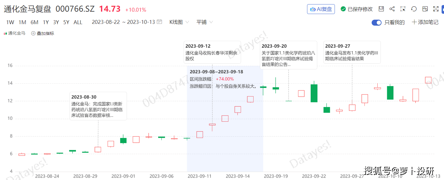 AI复盘上涨关键词:“创新药”概念,公司琥珀八氢氨吖啶片项目完成揭盲,该项目创新药用于治疗轻、中度阿尔茨海默病。