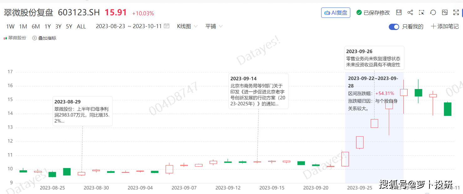 TOP 9 翠微股份:九月涨幅61.74%