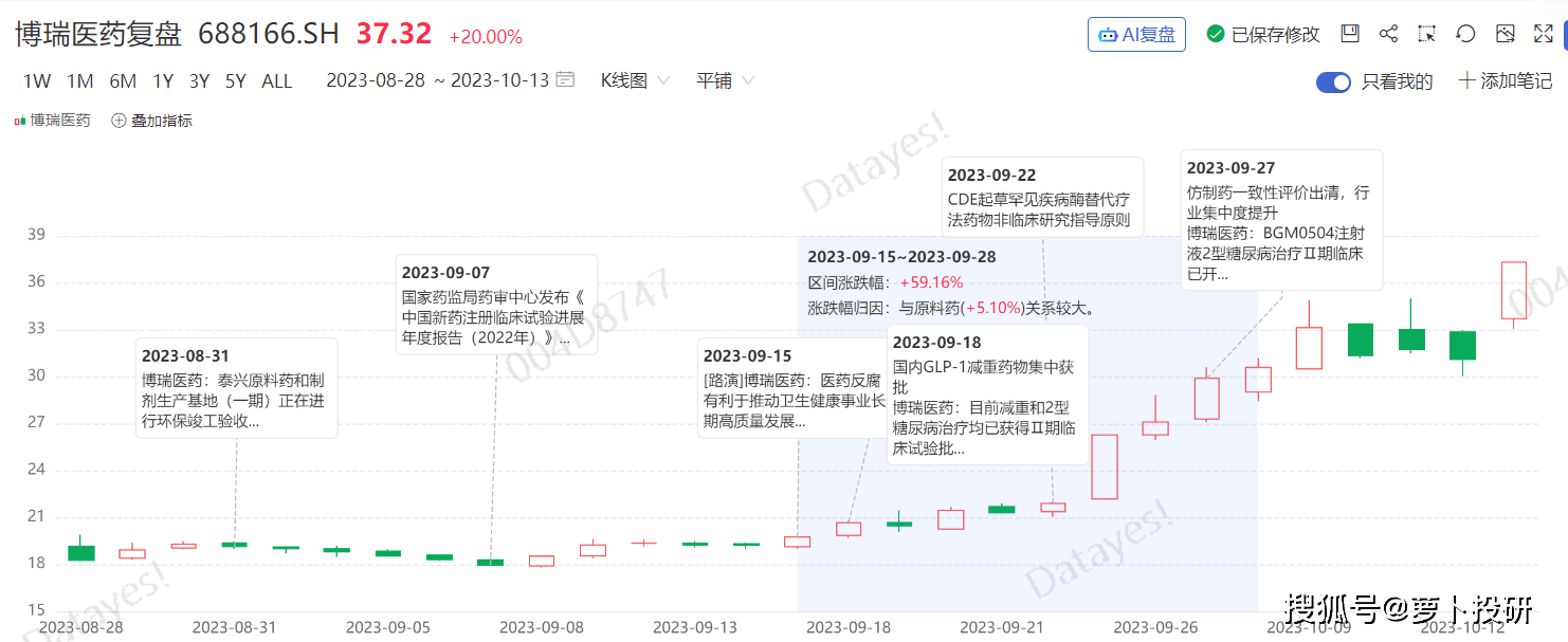 TOP 10博瑞医药:九月涨幅59.74%
