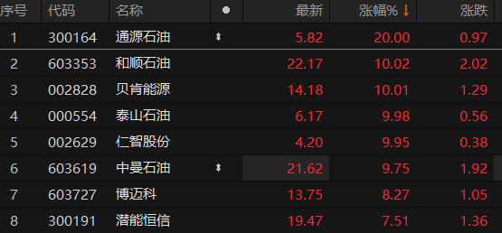 原标题:A股石油石化板块冲高 通源石油20cm涨停