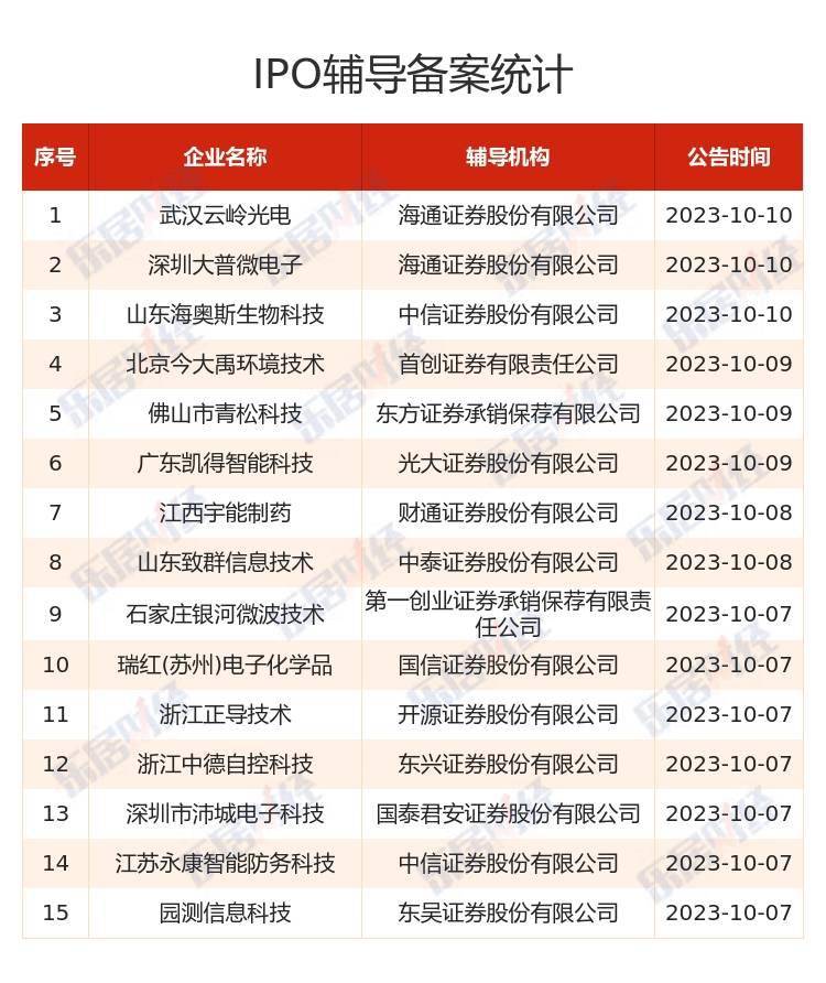 此外,IPO辅导备案增加15家,环比上升114.29%。