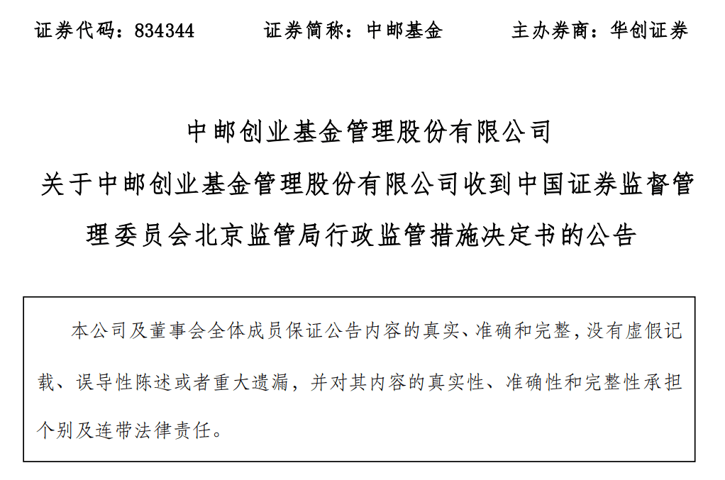 中邮创业基金公告显示,本次行政监管措施,对中邮创业基金现有业务不会造成较大影响,但对后续业务的增长与发展将产生一定的影响。