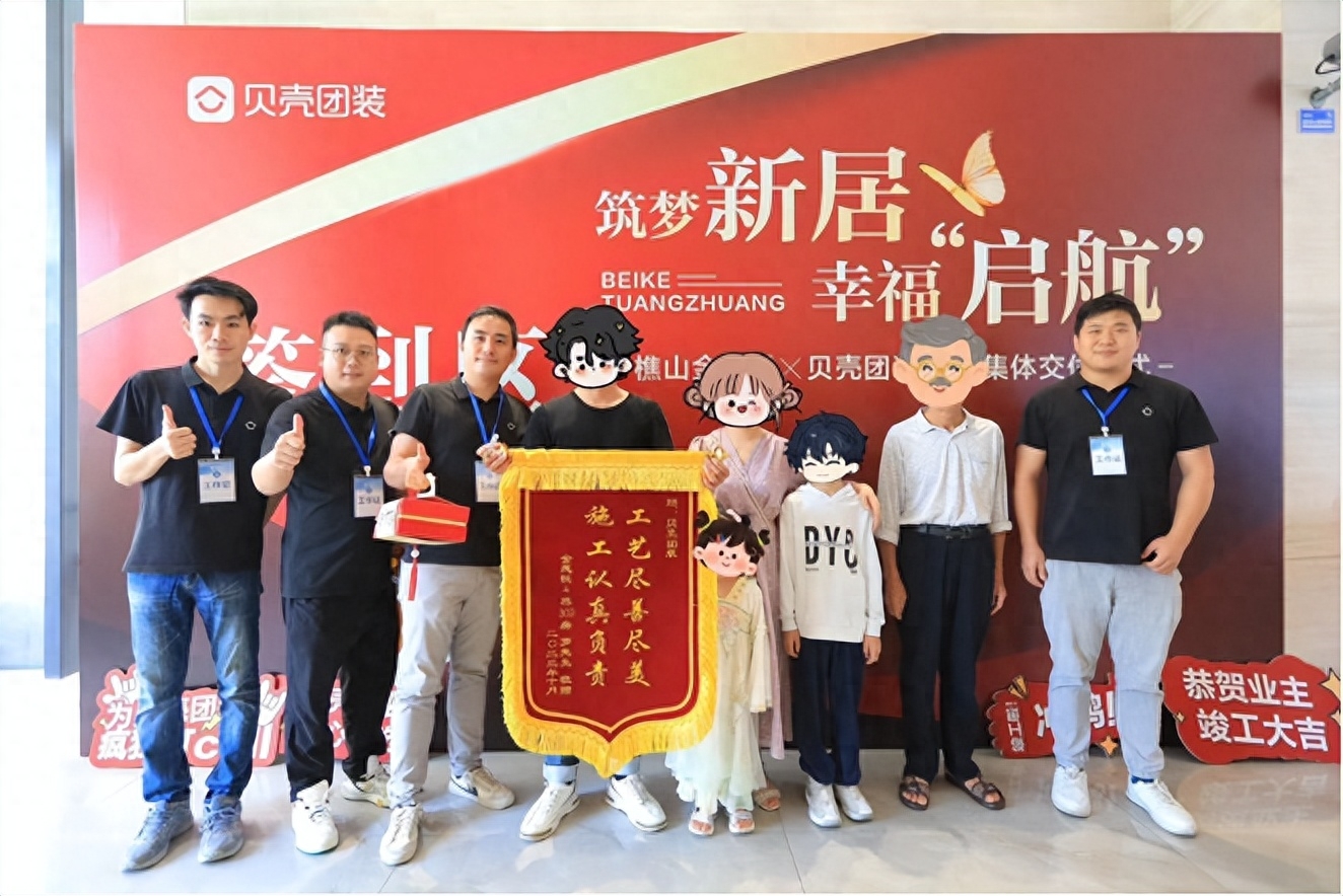 在樵山金茂悦竣工集体交付仪式上,5位业主给贝壳团装送来锦旗,为贝壳团装点赞。业主唐先生表示,“当我装修有问题的时候,在专属对接群都能及时得到反馈和解决,尤其是我住的地方离装修工地有点远,通过贝壳团装工地摄像头可以时刻在手机上了解工程进度,比较放心。”