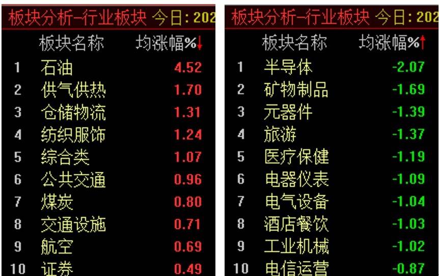 板块方面,巴以冲突加剧市场对原油供应缺口的担忧,上周油价反弹走高,今日油气板块表现最强,石油板块半日大涨4.52%,供气供热则上涨1.7%,跌幅板上锂电、半导体跌幅居前。