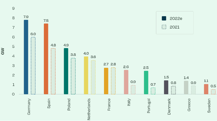 来源:SolarPower Europe,2022 年欧洲十大太阳能市场。