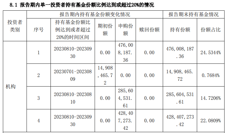 值得注意的是,“机构2”虽然在三季度也申购了约2.14亿份,但是在三季度就进行了全部赎回,相当于进行了短期操作。