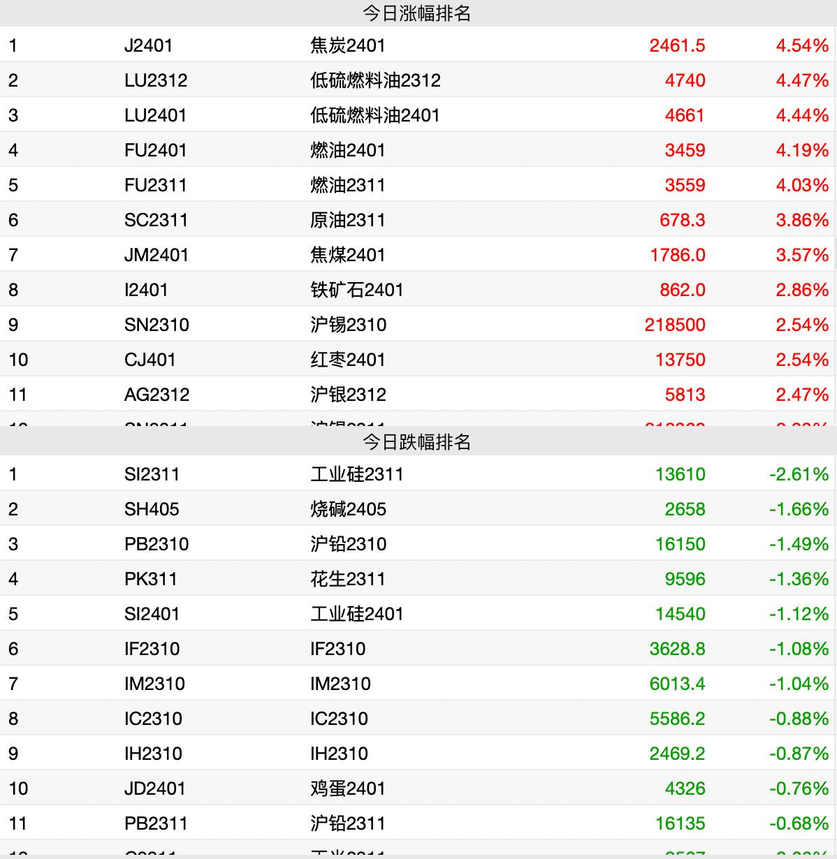 10月16日消息,商品期货收盘多数上涨,能化系领涨,低硫燃料油、焦炭、燃油涨超4%,原油、焦煤涨超3%,铁矿石、沪锡、沪银等涨超2%;工业硅跌超2%,烧碱、沪铅、花生等跌超1%。