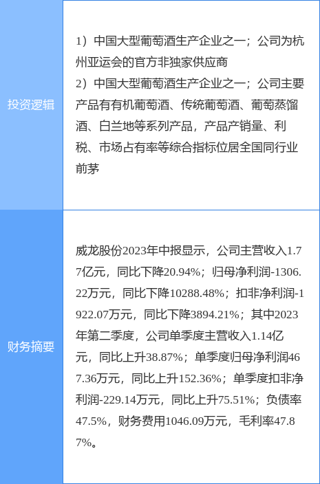 该股为葡萄酒,杭州亚运会概念热股,当日葡萄酒概念上涨0.29%。
