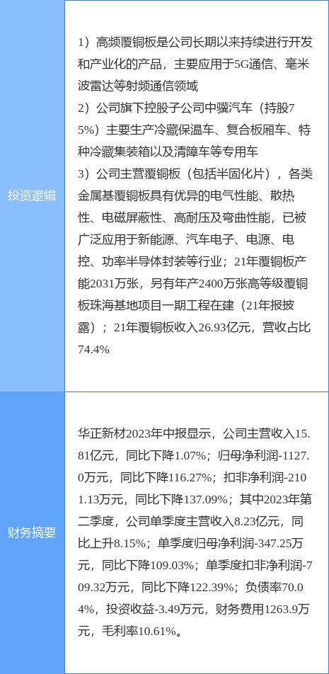 证券之星消息,华正新材涨停收盘,收盘价42.23元。该股于9点31分涨停,2次打开涨停,截止收盘封单资金为801.95万元,占其流通市值0.13%。