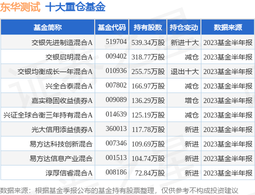重仓东华测试的前十大公募基金请见下表: