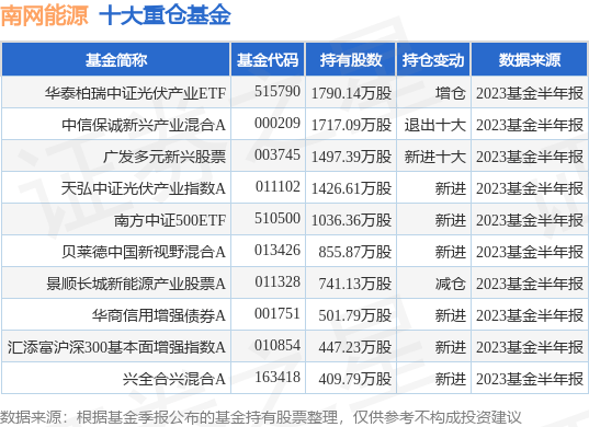 重仓南网能源的前十大公募基金请见下表: