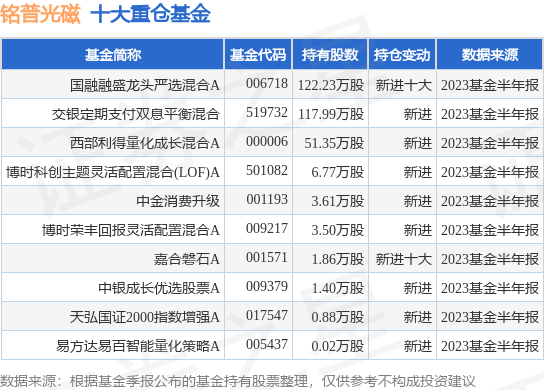 重仓铭普光磁的前十大公募基金请见下表:
