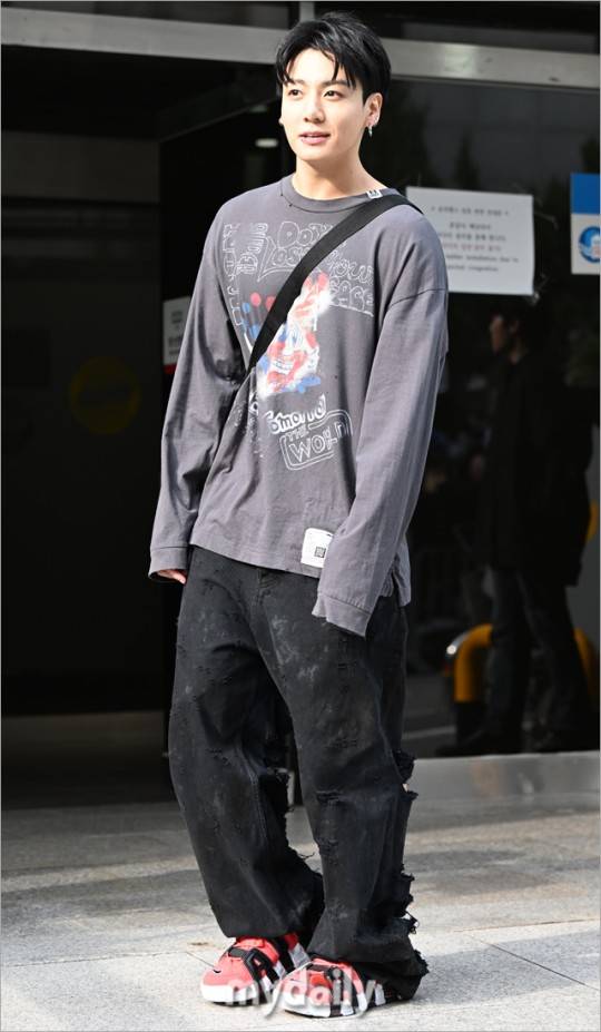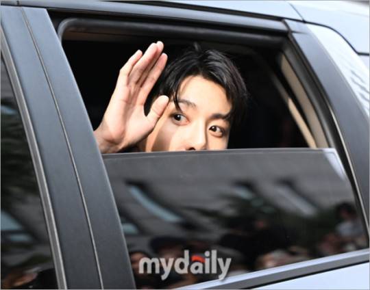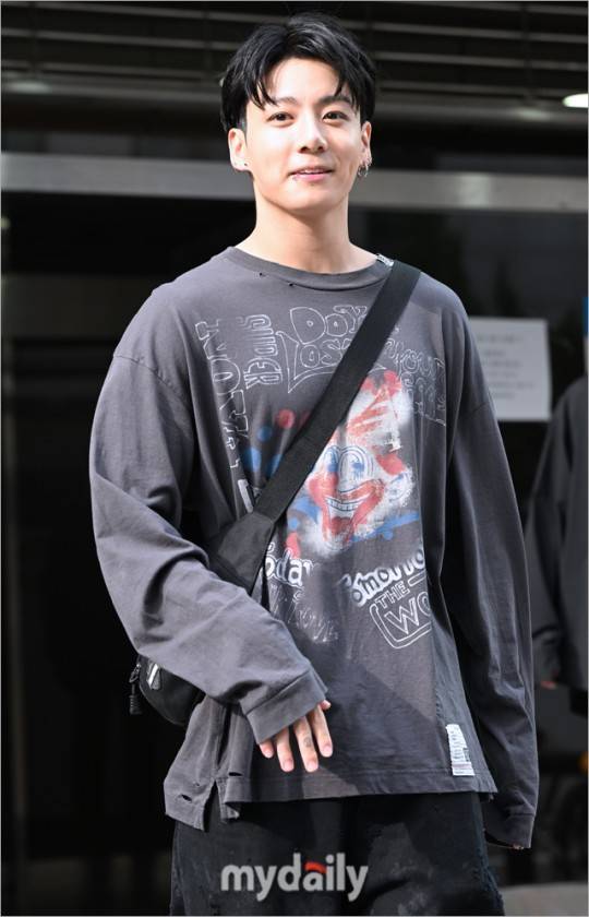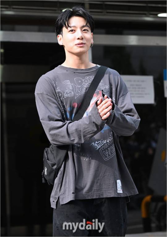 搜狐韩娱讯 10月13日上午,防弹少年团成员田柾国来到首尔KBS电视台,参加了《音乐银行》节目的彩排。郭明东/文 版权所有Mydaily禁止转载