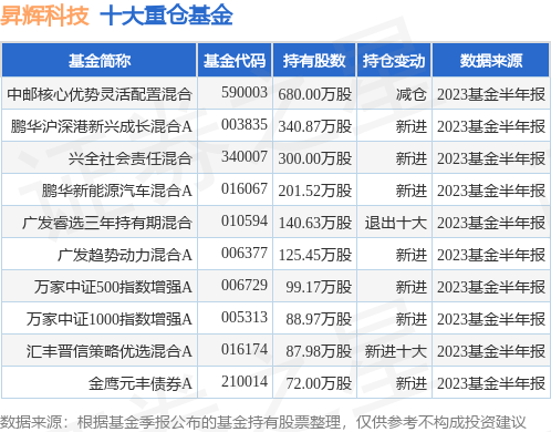 重仓昇辉科技的前十大公募基金请见下表: