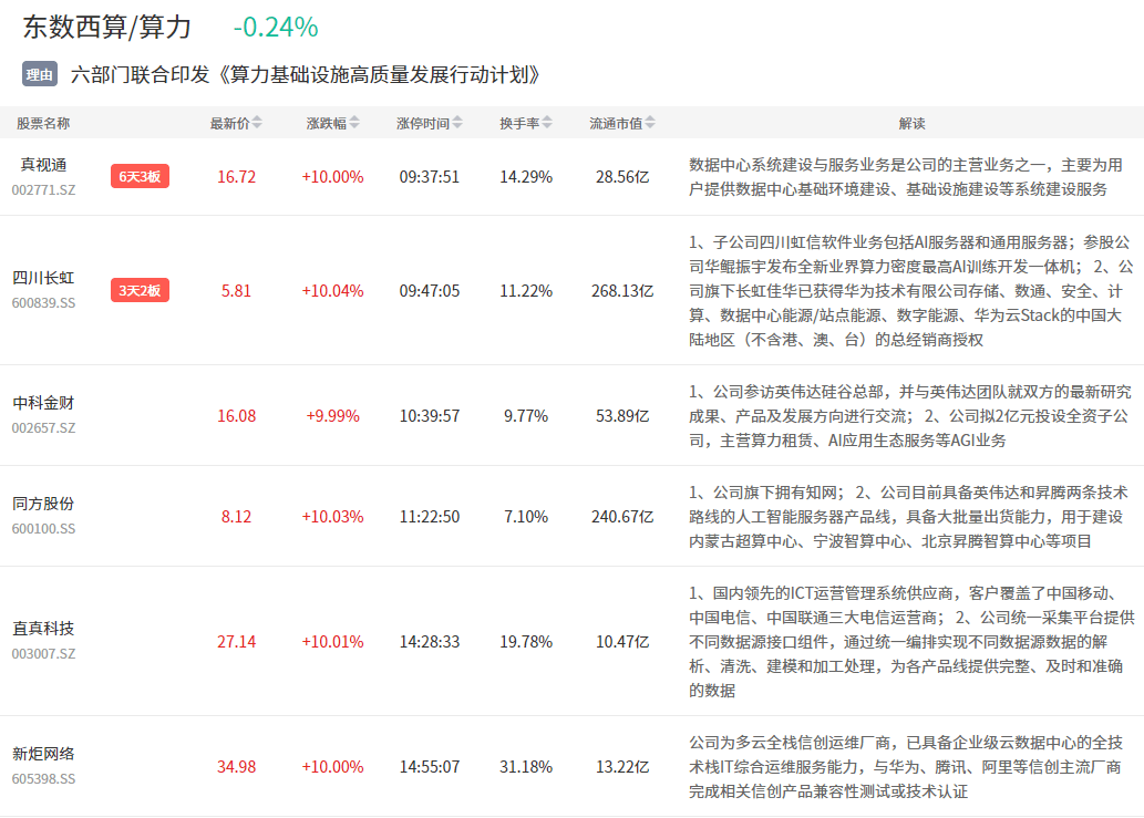 受此影响,四川长虹、同方股份等多个算力股涨停。