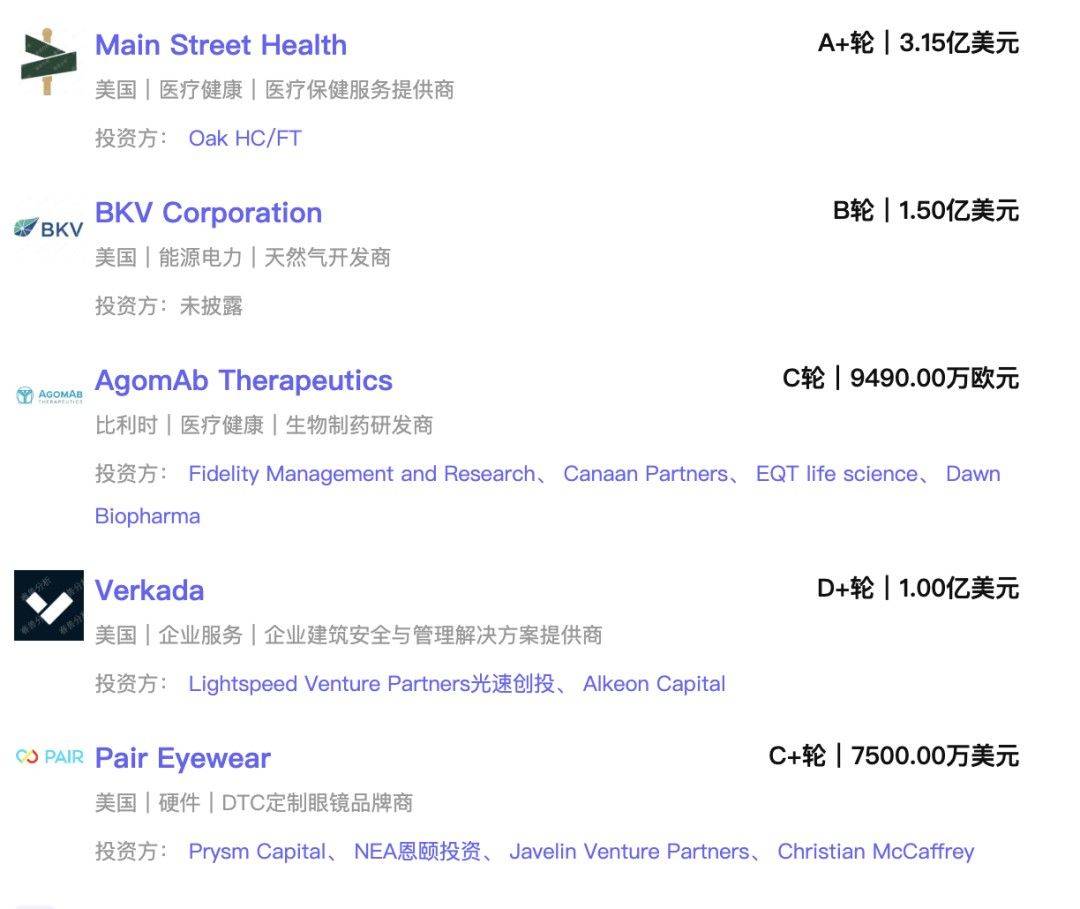 本周海外一级市场大额融资事件