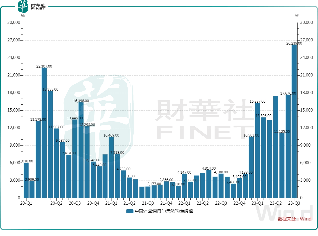 数据显示,今年2月以来,我国燃气商用车销量开始扶摇直上,扛起了推动重卡市场销量增长的大梁。在今年9月,燃气商用车销量达2.62万辆,同比飙升526.5%,市场十分火爆。