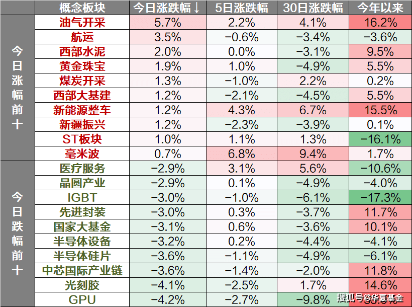 概念主题方面,油气开采、航运、西部水泥等板块上涨,中芯国际产业链、光刻胶、GPU等板块下跌。