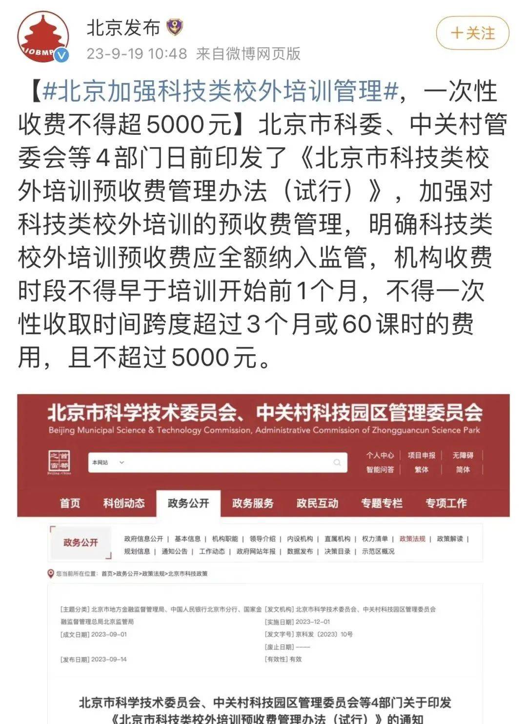 即便是科技类(非学科类)的校外培训,也对收费价格做出了规定,一次性收费不得超过5000元。