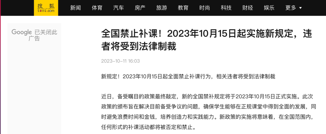 最近,教育部发出重磅通知,10月15日起全面禁止任何形式的补课活动,违者重罚。