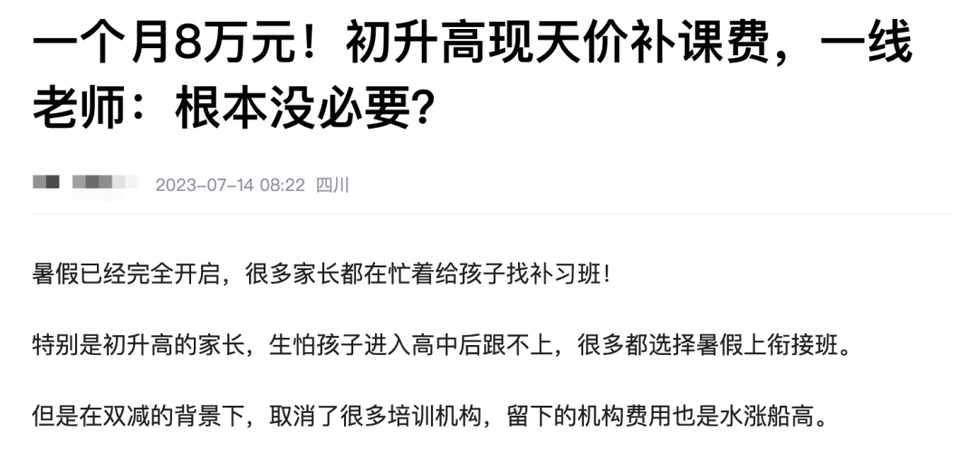 之前的暑假,甚至有家长每月花了8万块给孩子补课,真的把钱包完全掏空。