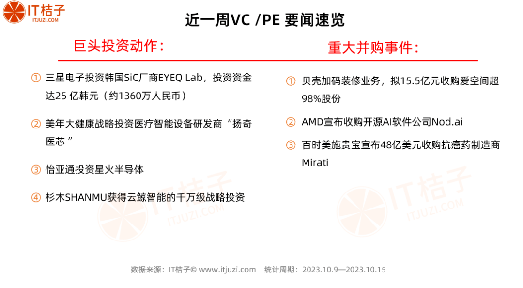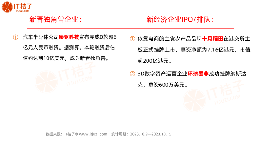 每周一更新的IT桔子周报为大家盘点创投圈值得关注的大事,发现巨头们的最新投资动作,观察VC募投风向标,看看哪些新经济公司正在成为独角兽和在IPO的路上——让您及时掌握新经济创投有价值的信息和趋势。
