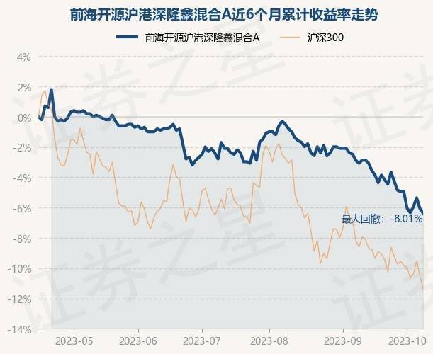 证券之星消息,10月16日,前海开源沪港深隆鑫混合A最新单位净值为0.942元,累计净值为1.552元,较前一交易日下跌0.32%。历史数据显示该基金近1个月下跌2.59%,近3个月下跌4.07%,近6个月下跌6.36%,近1年下跌12.04%。该基金近6个月的累计收益率走势如下图: