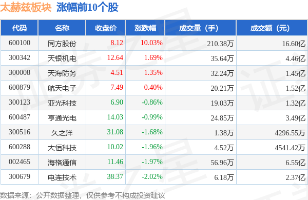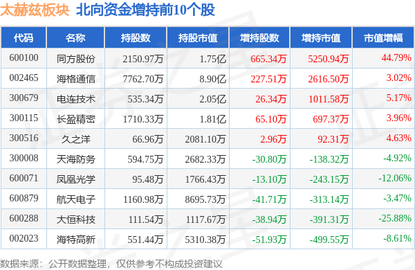 北向资金方面,当日太赫兹板块北向资金持股市值为32.88亿元,增持0.21亿元。其中增持最多的是同方股份,增持了0.53亿元。减持持最多的是亨通光电,减持了0.16亿元。太赫兹板块北向资金持股变动明细见下表: