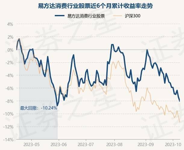证券之星消息,10月16日,易方达消费行业股票最新单位净值为3.642元,累计净值为3.642元,较前一交易日下跌0.68%。历史数据显示该基金近1个月下跌4.13%,近3个月下跌4.41%,近6个月下跌8.03%,近1年下跌5.77%。该基金近6个月的累计收益率走势如下图: