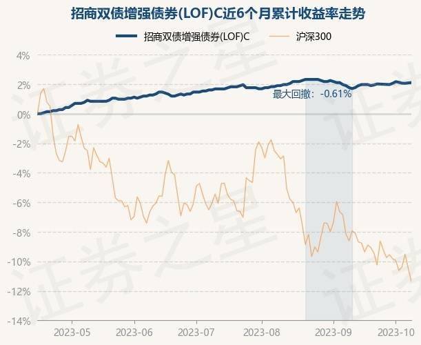 证券之星消息,10月16日,招商双债增强债券(LOF)C最新单位净值为1.498元,累计净值为1.637元,较前一交易日上涨0.02%。历史数据显示该基金近1个月上涨0.13%,近3个月上涨0.4%,近6个月上涨2.04%,近1年上涨2.67%。该基金近6个月的累计收益率走势如下图: