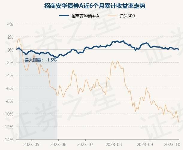 证券之星消息,10月16日,招商安华债券A最新单位净值为1.1437元,累计净值为1.1765元,较前一交易日下跌0.2%。历史数据显示该基金近1个月下跌0.41%,近3个月下跌0.43%,近6个月下跌0.03%,近1年上涨2.52%。该基金近6个月的累计收益率走势如下图: