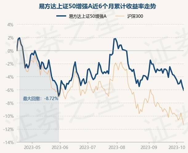 证券之星消息,10月16日,易方达上证50增强A最新单位净值为1.7402元,累计净值为3.6902元,较前一交易日下跌0.66%。历史数据显示该基金近1个月下跌2.68%,近3个月下跌3.81%,近6个月下跌6.03%,近1年下跌1.58%。该基金近6个月的累计收益率走势如下图: