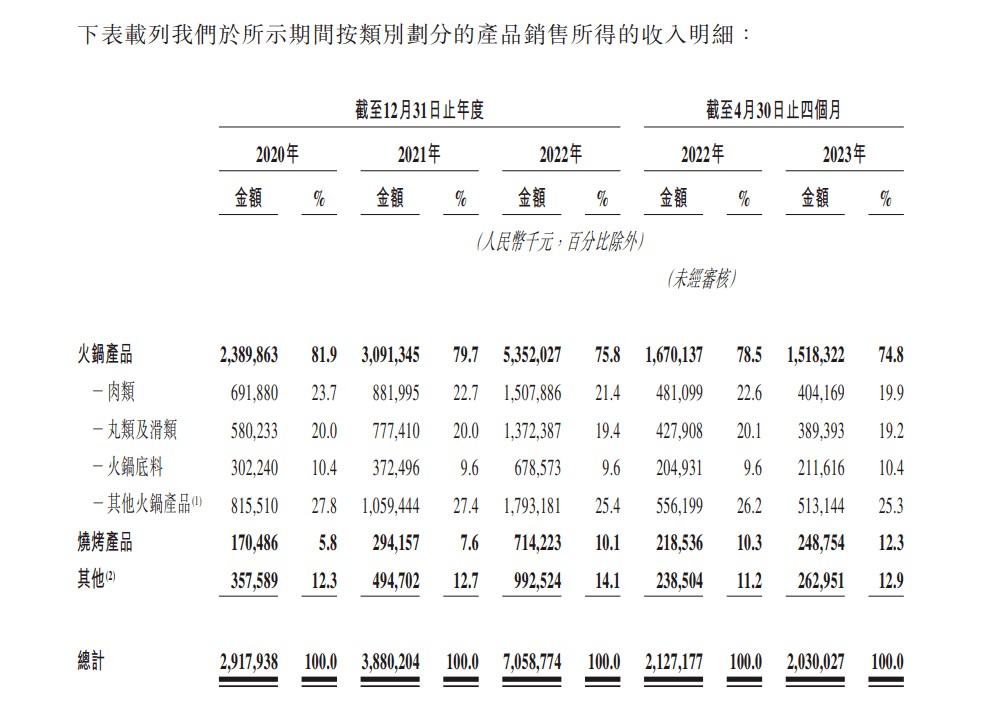 锅圈食品在招股书中称,过去几年通过门店网络快速扩张,专注于成本优化,品牌知名度上升,以及进一步推进数字化计划及提高从食品生产至零售的经营效率等方面的努力,公司于2022年实现盈利,并录得净利润2.41亿元,截至2023年4月底,公司录得净利润1.2亿元。