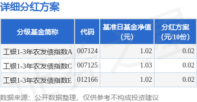 证券之星消息,10月17日发布《工银瑞信中债1-3年农发行债券指数证券投资基金2023年第九次分红公告》。本次分红为本基金第四十二次分红,2023年第九次分红。公告显示,本次分红的收益分配基准日为10月10日,详细分红方案如下: