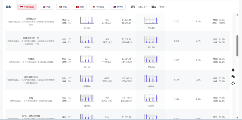 TikTok数据平台“UTen”显示,在个人护理与美容赛道,印尼的除臭剂、按摩器、润肤霜等细分产品正在印尼市场快速增长。