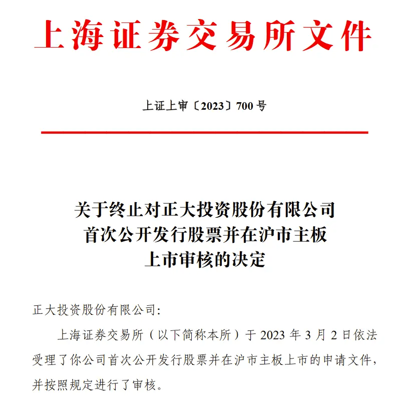 前段时间,上交所官网发布消息,因正大股份及保荐人提交撤回申请文件,所以终止对正大投资首次公开发行股票(IPO)的审核。