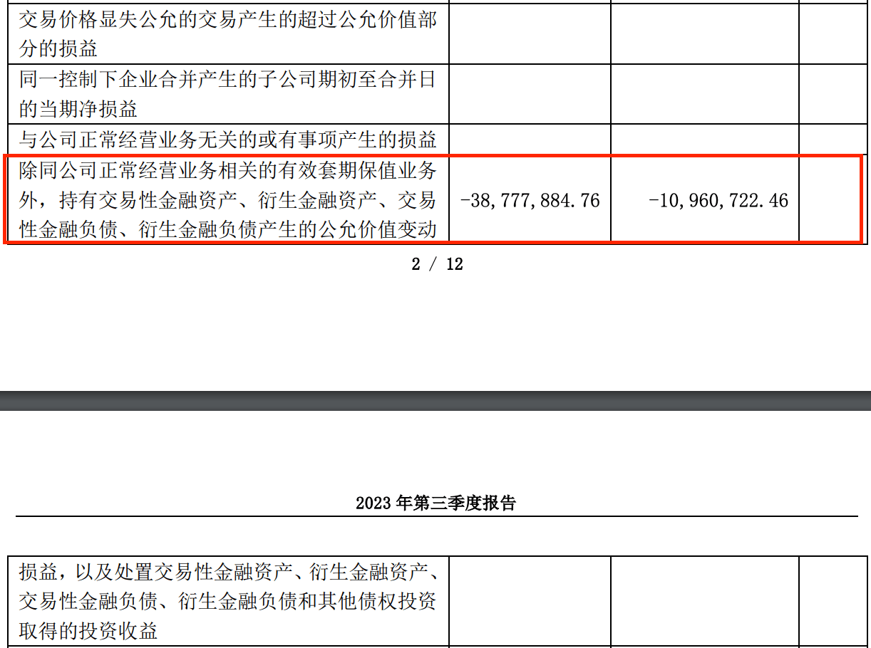 钛媒体APP留意到,第三季度归属于上市公司股东的净利润大幅减少,主要是受期内交易性金融资产公允价值的突然下降拖累。三季报显示,期内非经常性损益为亏损3305万元,而2022年同期的非经常性损益为358万元。